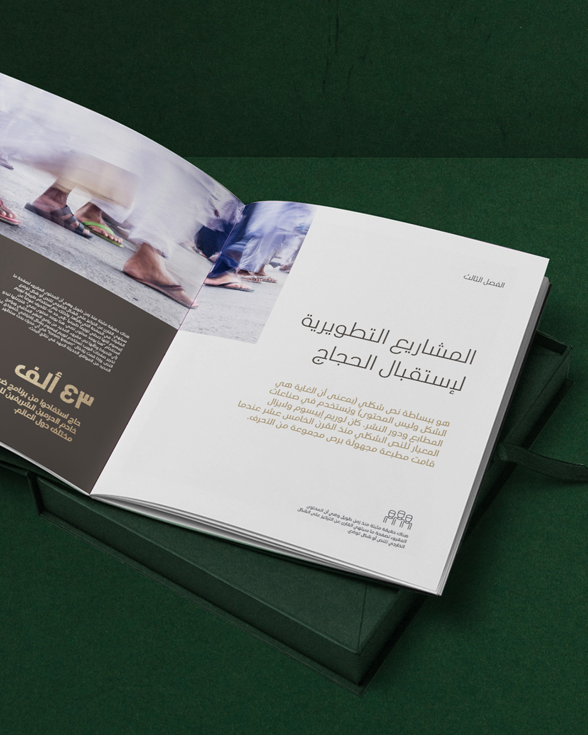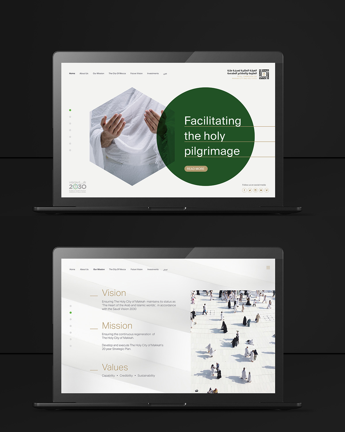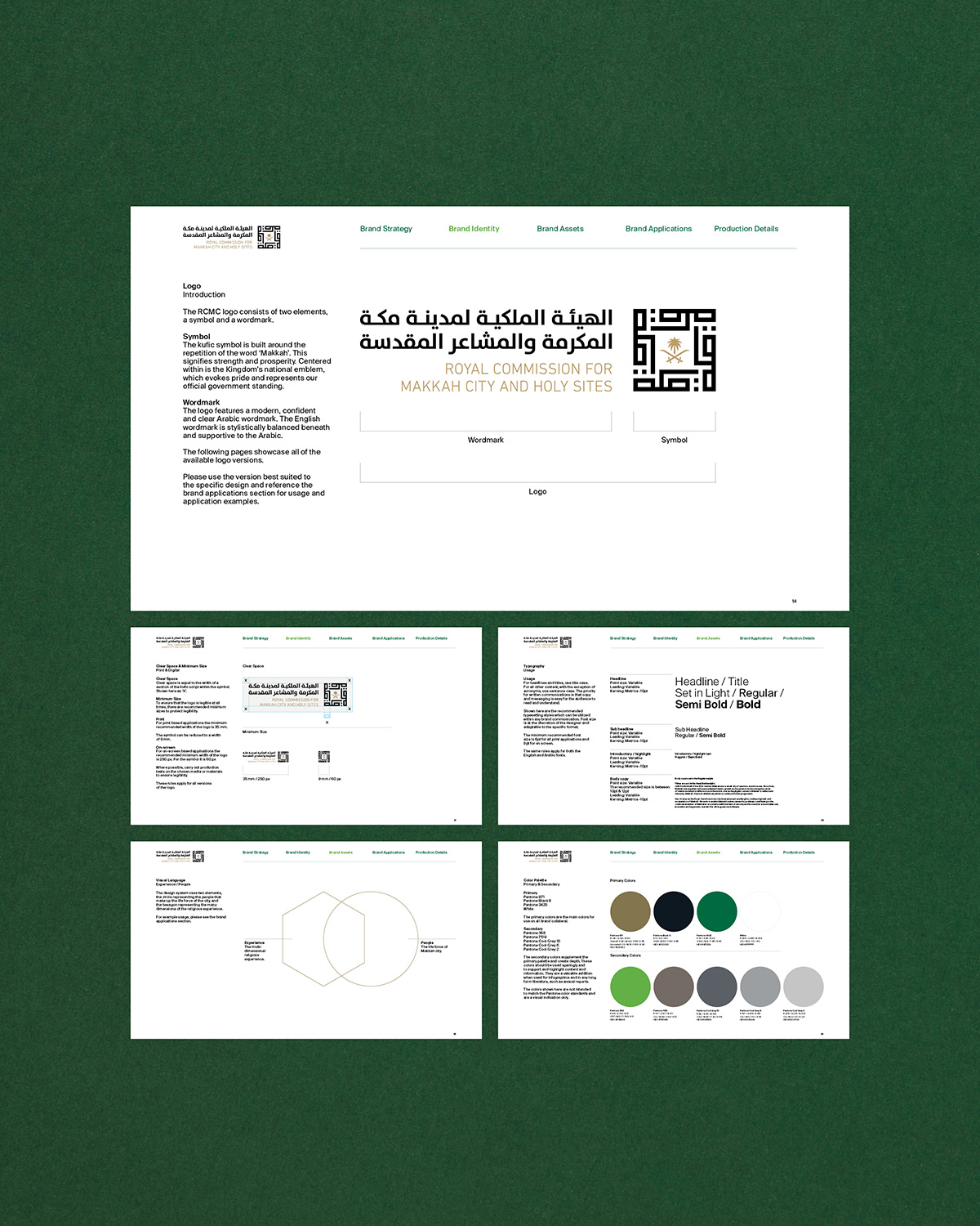 In 2018, the Royal Commission for Makkah City and Holy Sites (RCMC) was established by the Kingdom of Saudi Arabia. Dragoman was appointed to create the identity, design systems and all brand assets. This was then approved at the highest level by HRH Salman bin Abdulaziz Al–Saud, Custodian of the Two Holy Mosques.